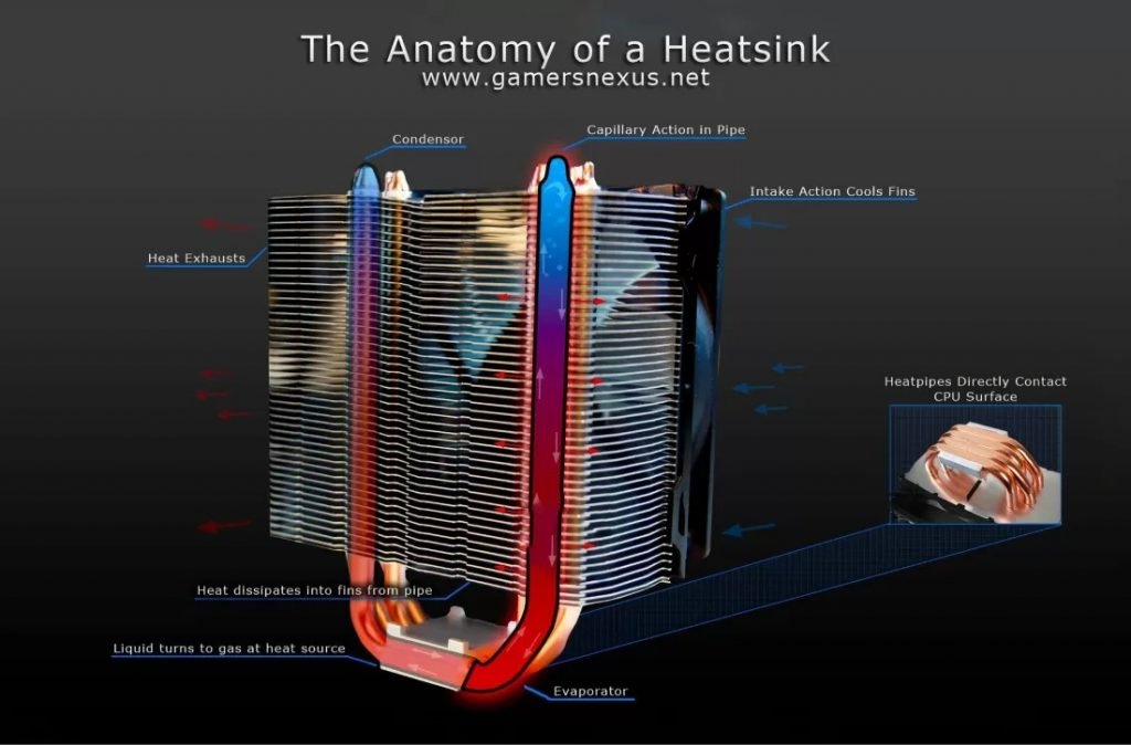 پرههای نازک در هیتسینک یا رادیاتور، گرما را روی سطح بسیار بزرگی پخش میکنند تا فن بتواند آن را بهراحتی از محیط خارج کند. هرچه پرهها نازکتر باشند، میتوان سطح تماس بیشتری را در فضای محدود جای داد. اما اگر بیش از حد نازک شوند، تماس حرارتی مناسبی با لوله حرارتی برقرار نمیکنند و انتقال گرما به پرهها بهدرستی انجام نمیشود.